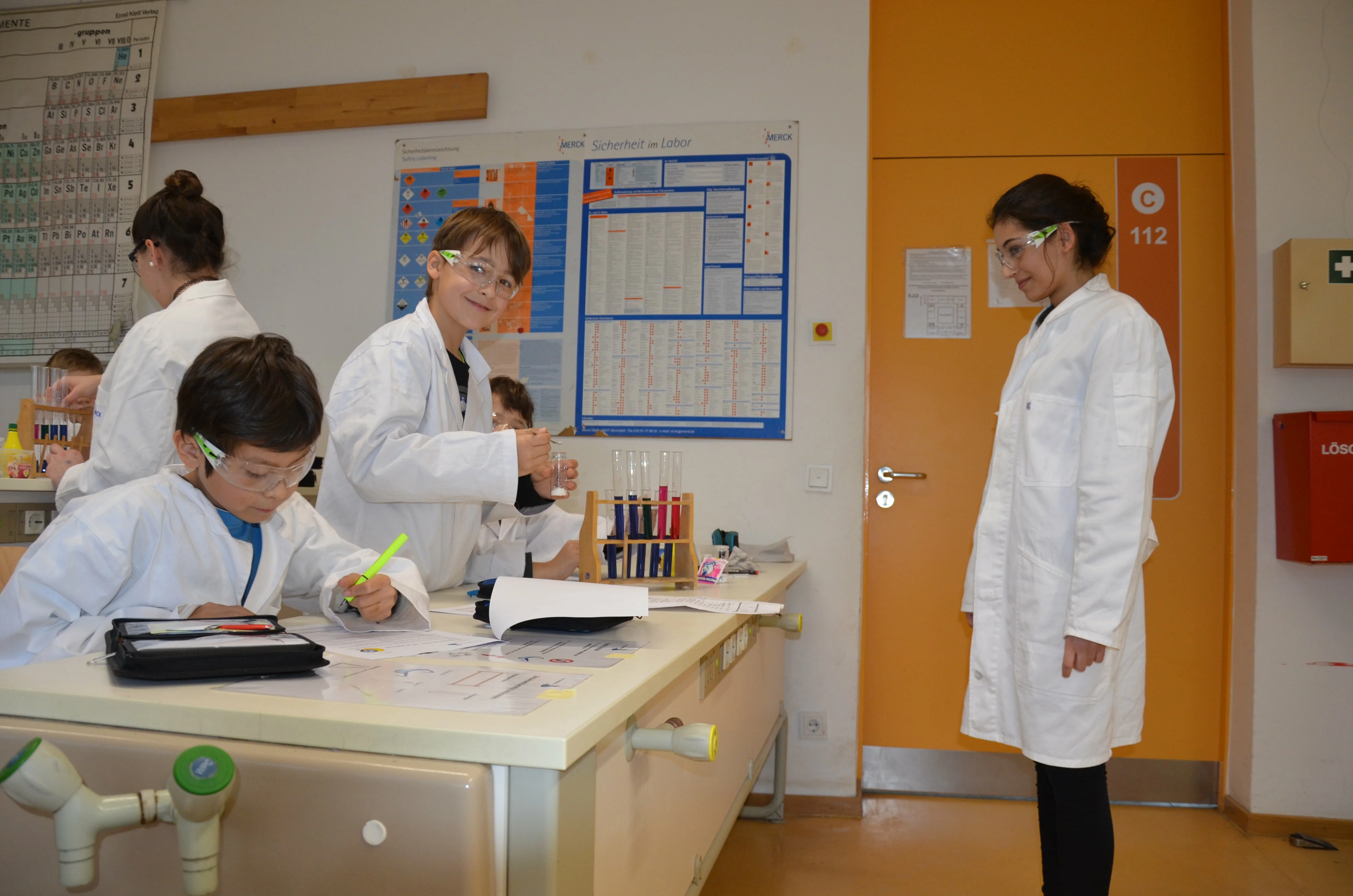 Am Montag, den 23.01.2023 und am Donnerstag, den 26.01.2023 finden am Gymnasium Gernsheim jeweils von 14:00 Uhr bis 16:15 Uhr zwei Forschernachmittage für Schülerinnen und Schüler der 4. Klassen statt. Während unseres Forschernachmittags habt ihr die Möglichkeit, in kleinen Gruppen selbstständig einfache Experimente im Chemiesaal unserer Schule durchzuführen. Betreut werdet ihr dabei von einigen unserer Schüler aus der Oberstufe sowie verschiedenen Biologie-, Chemie- und Physik-Lehrern. Ausgestattet mit unseren Laborkitteln könnt ihr als kleine „Nachwuchsforscher“ in spannenden Experimenten Alltagsphänomenen auf die Spur kommen.